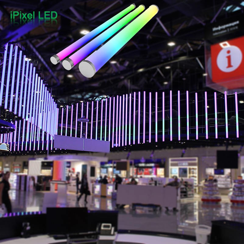 3D ceiling-hanging animation lighting: milky PC diffuser delivers 360° uniform output with no shadow; driven by an Art-Net controller, powered via T-connector, and customized up to 4.7m for airport atriums, commercial ceilings, and stage/entertainment déc